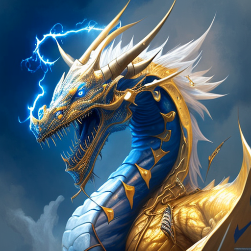 그러나 분노하거나 전투 중일 때는 빛나는 비늘과 눈과 발톱에서 번개가 치직거리는 강력한 용으로 변신합니다.